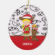 Esto es un recuerdo adorable. Es un ornamento con una impresión occidental blanca en el top y la parte inferior es roja con una tira marrón a lo largo de ella. En el centro es botas de un vaquero el llevar de la vaquera y un vestido rojo con un chaleco verde. Ella tiene un gorra de vaquero marrón encendido con un gorra de Santa encima de ése. Al lado de ella es una bota de vaquero marrón llenada de los presentes. Compruebe hacia fuera los muchos otros colores y diseños que tenemos en nuestra tienda. ilustraciones del ©JW