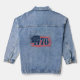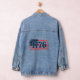 ¡Celebren la historia estadounidense con estilo! Esta chaqueta de denim presenta un diseño anticuado de la bandera estadounidense y un guiño a 1776, mezclando orgullo patriótico con un aspecto escarpado y vintage.