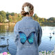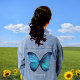 Vaquera Hermosa Chaqueta de la Mariposa Azul Grande Denim
