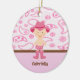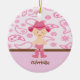 Esto es un recuerdo adorable. Es un ornamento con un blanco y la impresión occidental rosada en el top y la parte inferior es rosa clara con una tira marrón a lo largo de ella. En el centro es una vaquera del bebé que lleva botas de vaquero rosadas, un pañal rosado y el gorra de la vaquera. Compruebe hacia fuera los muchos otros colores y diseños que tenemos. ©babystar