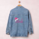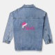 Esta divertida chaqueta de vaquero de vacaciones se acentúa con Novia escrita en un tipo rosa brillante, usando un lindo sombrero de Santa Rosa, lo que lo hace perfecto para las vacaciones.