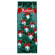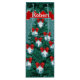 Vaqueros y vaqueros rotando siluetas en adornos azules con cintas rojas decorando un árbol de Navidad verde. El fondo es la impresión de purpurinas FAUX azul. Ningún purpurina real. Este diseño está impreso en la parte delantera y trasera. Hay una cinta en la parte superior para elegir el texto. Usar un nombre o un saludo de vacaciones. Vea más artículos de vacaciones occidentales en el Rodeo Days Store.