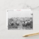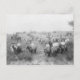Esta fotografía de 1905 de F.M. Steele muestra a un grupo de vaqueros, en su mayoría vestidos con camisetas blancos, montados a caballo. Detrás de ellos están los chuckwagons y los vaqueros sentados comiendo.