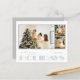 Pequeñas tarjetas semirojas de 4,5" x 5,6" de papel de 110 libras, sus tres fotos favoritas y las palabras Felices Fiestas en letras plateadas de moda se imprimen en la parte delantera de estas tarjetas de felicitación de fotos de vacaciones de Navidades de presupuesto con su mensaje y nombres en la parte posterior. Asegúrese de comprobar dos veces su pedido antes de añadirlo a su carrito, ya que lo que ve en la pantalla es lo que se va a imprimir. El servicio de diseño en vivo puede ayudarle con su diseño de diseño si es necesario.