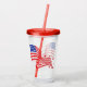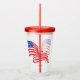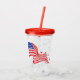 Este tumbler acrílico con su propia tapa y paja tiene una imagen de la bandera estadounidense con estrellas sobre un tumbler claro. Tapa y paja mostradas en rojo. Elija la tapa de color /paja.