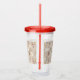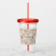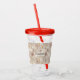 Un vaso de acrylic con un patrón adorable de estilo nórdico. Árboles de pino de invierno, osos, renos y ardillas. Color marrón claro.