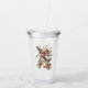 Vaso Acrílico Ave Gris Tyrant de Audubon con flores rosas
