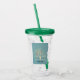 El tumbler acrílico personalizado con un fondo verde silencioso sobre la parte superior es un árbol amarillo claro con dos siluetas de pájaro naranja sentadas sobre las ramas.