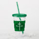 Este hermoso tumbler verde presenta una cruz blanca y texto de personalizable.