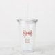 Este diseño presenta una estética suave y elegante. En la parte superior, hay una delicada proa de acuarela en un rosa mullido. Debajo de la proa, la frase "Bride Squad" está escrita en un elegante y fluido tipo de letra de guión, coloreado con un tono ligeramente oscuro de rosa que complementa el arco. El conjunto es limpio, encantador y elegante, lo que lo convierte en un gran accesorio para una fiesta nupcial. Sería perfecto para las damas de honor.