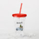 Un tumbler acrílico con un diseño festivo. Camión con Navidades de pinos junto con algunos animales de bosque. Un oso, un zorro y un ciervo parados en la parte de atrás yendo a dar un paseo. Diseño creado con acuarelas.
