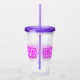 Las palabras FIN DE SEMANA DE CHICAS puestas en rosa neón brillante en un vaso de plástico para bebidas.