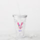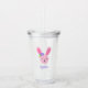 Un lindo personalizado de Pascua personalizada de tumbler acrílico. El ilustracion de conejo rosa con una flor morada es tan dulce. Añada fácilmente un nombre para hacer de este un regalo único para una canasta de Pascua de los chicas.