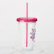 Un vaso de acrylic con lindo unicornio con alas para la fiesta de cumpleaños de la edad de tu hijo. Agrega el nombre de cada niño y llena el vaso con caramelos, calcetines, esmalte de uñas, brillo de labios o cualquier cosa que quepa para un favor de fiesta de cumpleaños.