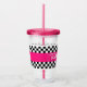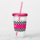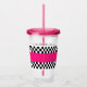 Personalice para usted o para un fanático de la carrera, una copa de viaje con estampado de cuadros en blanco y negro, ideal para hacer viajes por carretera, a la pista o en viajes por carretera. El blanco con en la impresión a cuadros se puede cambiar a cualquier color. El texto también es extraíble. Varias opciones de color para elegir.