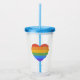 Esta obra de arte presenta un colorido corazón a rayas arco iris.