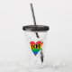 Esta obra de arte muestra un corazón arco iris con las iniciales LGBT.