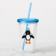 Este impresionante tumbler presenta un lindo personaje de pingüino con una panza blanca, grandes ojos azules con pupilas negras y lindos pies naranjas y pico. Este pequeño y encantador ave de invierno hará las delicias de niños y adultos. El pingüino se sienta en un fondo azul pálido helado para recordarle su helado hogar ártico.