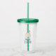 Tumblerante acrílico personalizado con un lindo dinosaurio sonriente, mejillas rosadas y RAWR escrito en su vientre. 3 coloridas estrellas felices sobre su cabeza.