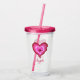 Este tumbler presenta un ilustracion de corazón lindo y a la moda en tonos rosados con la capacidad de añadir el nombre de una persona u otro texto dentro, el perfecto regalo personalizado para el El día de San Valentín!