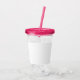 ilustracion de elefante rosado que desfilaba por la parte inferior de este vaso, con un nombre personalizable por encima. Está disponible en diferentes colores, pero el diseño rosa es muy adorable para un niño.