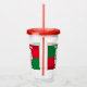 Vaso Acrílico Festividad fotográfica de perro blanco rojo y verd