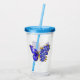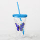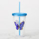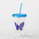 Joyería, azul, zafiro, mariposa floral brillante con ala decorada con flores azules y preciosas con hojas de oro sobre fondo blanco.