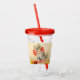 Tumbler acrílico con el gatito de Meta Plückebaum con cinta roja (b. 1876). Un gatito gris con rayas oscuras está bellamente adornado con una cinta roja. El gatito juega con una abeja. Las flores amarillas decoran el primer plano. ¡Un regalo maravilloso para los amantes del gato y del arte alemán!