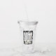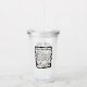 Esta bebida acrílica, con gota y tapa, tiene un gato blanco encima de las llaves de un piano y está guiñando un ojo dentro de un marco negro ondulado con puntos blancos y barras de notas musicales negras. Personalizar el texto con la plantilla en la parte delantera y posterior.
