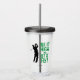 Cita de golfista "Tee It High & Let it Fly!" diseño acrílico de vidrio para beber presenta un divertido tipo de letra de mediados de siglo en verde kelley combinado con una silueta masculina de oro de negro clásico sobre un fondo transparente. El color de la cita y el golfista es el personalizable. La tipografía y el golfista son diseños gráficos vectoriales y se pueden transferir fácilmente a otros productos de Zazzle grandes, o pequeños, y conservarán la claridad sin pixelar. Mensaje con solicitudes de preguntas de color personalizado.