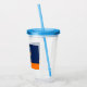 Colorful fish in ocean in shades of blue, orange and bright pink.