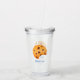 Leche y galletas para el amante de las galletas de chocolate en la familia. Celebre el cumpleaños de su pequeña con nuestras divertidas y festivas galletas y el tema de la leche. Con un vaso alto de leche con una paja y galletas de chocolate. El fondo es azul claro con banderas de fiesta. Personalizable completo. Consulte la papelería de coordinación y los regalos.