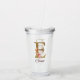 Vaso Acrílico Letra personalizada E de oro con rosas rosadas