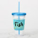 Tome su bebida de este tonto Tumbler de Pescado Grande. Un lado tiene un pequeño pez dorado y un texto grande "Little Fish", el otro lado tiene un pez dorado grande con "Big Fish" escrito pequeño contra un fondo de color azul. Diviértete con esta divertida taza irónica.