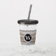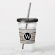 Le encantará esta rústica monograma de madera acrílica Tumbler blanco monograma en círculos negros y grises y un fondo de pizarra de madera.
