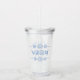 Este tumbler acrílico de inspiración costera presenta conchas de vieiras azules clásicas y puede ser personalizado en el frente y en la parte posterior con su elección de nombre y texto especial.