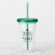 Diseño moderno de tipografía "el tassel valía la pena" en negro y verde, gran tumbler personalizado para la fiesta de graduación.