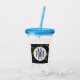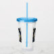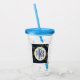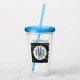 Un tumbler acrílico personalizado con un fondo elegante y elegante de mármol azul marino y dorado. En la parte superior hay un círculo con un Relieve metalizado de oro falso con su monograma personalizado en el interior.