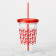 Este impresionante estampado de Navidades tumbler presenta una imagen de arte digital de un lindo caballo balanceado al estilo escandinavo. El caballo es rojo con un mané rojo oscuro, cola y pezuñas. El caballo amistoso sonríe. Tiene una silla blanca y riendas con motivos folclóricos escandinavos bonitos en la silla, incluyendo el sol, la luna y las estrellas y los corazones y flores. La base del mecedor es roja y está cubierta de hojas blancas de bonito. El diseño se inspiró en el caballo Dala sueco.
