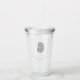 El logotipo de personalizado de negocios de la empresa moderna marca tumbler acrílico claro con paja y su tipografía texto personalizado para slogan o sitio web.