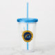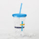 Un tumbler acrílico con el sello de NJDCF y los logotipos "Seguros, Saludables, Conectados" impresos en ambos lados.