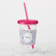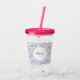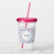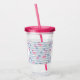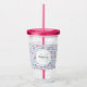 Un tumbler acrílico con un patrón con una vibración veraniega divertida. Flamencos rosados y piñas puestas en un patrón de rayas azul claro con hojas y corazones alrededor.