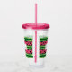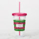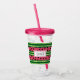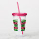 Tumbler acrílico con un lindo patrón de sandía. Corteza verde en capas de rayas junto con una capa de rayas rosas con semillas negras dentro. Diseño divertido y veraniego. Un rectángulo en la parte superior con el texto dentro.