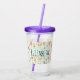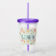Un tumbler acrílico con un patrón caprichoso con una colección de juguetes y animales infantiles deliciosos. Personalizar con un nombre dentro de una forma rectangular.