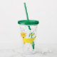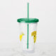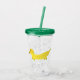 Esta copa de viaje incluye dos ilustraciones de perros estilo dachshund hechos de plátanos amarillos, con un gráfico en la parte delantera y otro en la parte trasera. En el frente hay un lugar para personalizar la taza con un nombre.