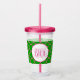 Vaso Acrílico Quatrefoil rosa y verde y monograma