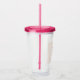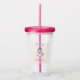 Un unicornio blanco y suave con cuerno azul y púrpura sobre fondo rosado. Sólo hay que añadir un nombre a este diseño.