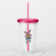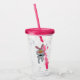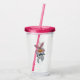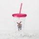 Este vaso acrílico con gota y tapa tiene un lindo conejito blanco con la nariz grande del naranja con una corbata de la proa negra que da un pulgar hacia arriba en la parte delantera y trasera.
