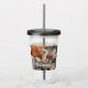 Tumbler acrílico con una hermosa escena de playa submarina. Hay caballito de mar, pez estrella, coral naranja, perlas y marisco a la deriva.