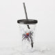 Un divertido vaso acrílico con una espeluznante pero genial araña gigantesca, un bolígrafo de telaraña y un ilustracion de tinta. ¡Con una tapa y una paja a juego!